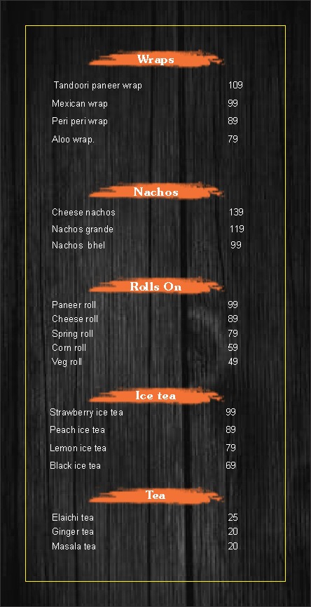 - Wraps: Savor the spicy Tandoori Paneer Wrap and the zesty Mexican Wrap, perfect for a quick bite.